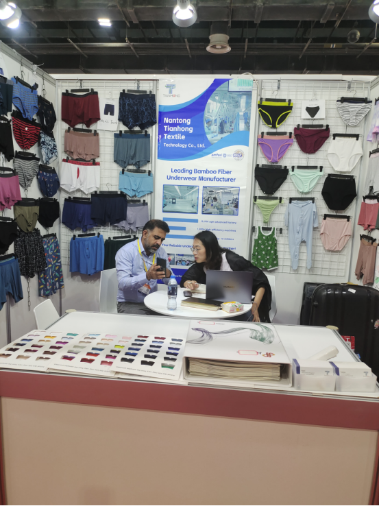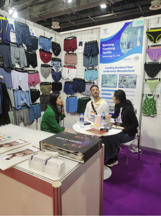 Tianhong a eu un impact exposant sur la survelle, ateignant un énorme succés. AU Cours de 3 heures, nous Avons Eu le Plaisir d'accueIllir près de 600 Visiteurs de plus de dix paye, Reprisant Divers Secteurs de l'industrie du Vêlehommest, Y COMPRIS LES Start-upS, Les Propriétaires de Marques, les Agents D'approvisionNature et Austres. Les Avons Fièhommest Présenté Notre Collection de Sous-Vêlehommests et de Sous-Vêlements pour homme, Femmes et pour les enfants, Tous Avec des Tissus de Viscose en Bambou, Y COMPRIS, Mais sans s'y limiter: